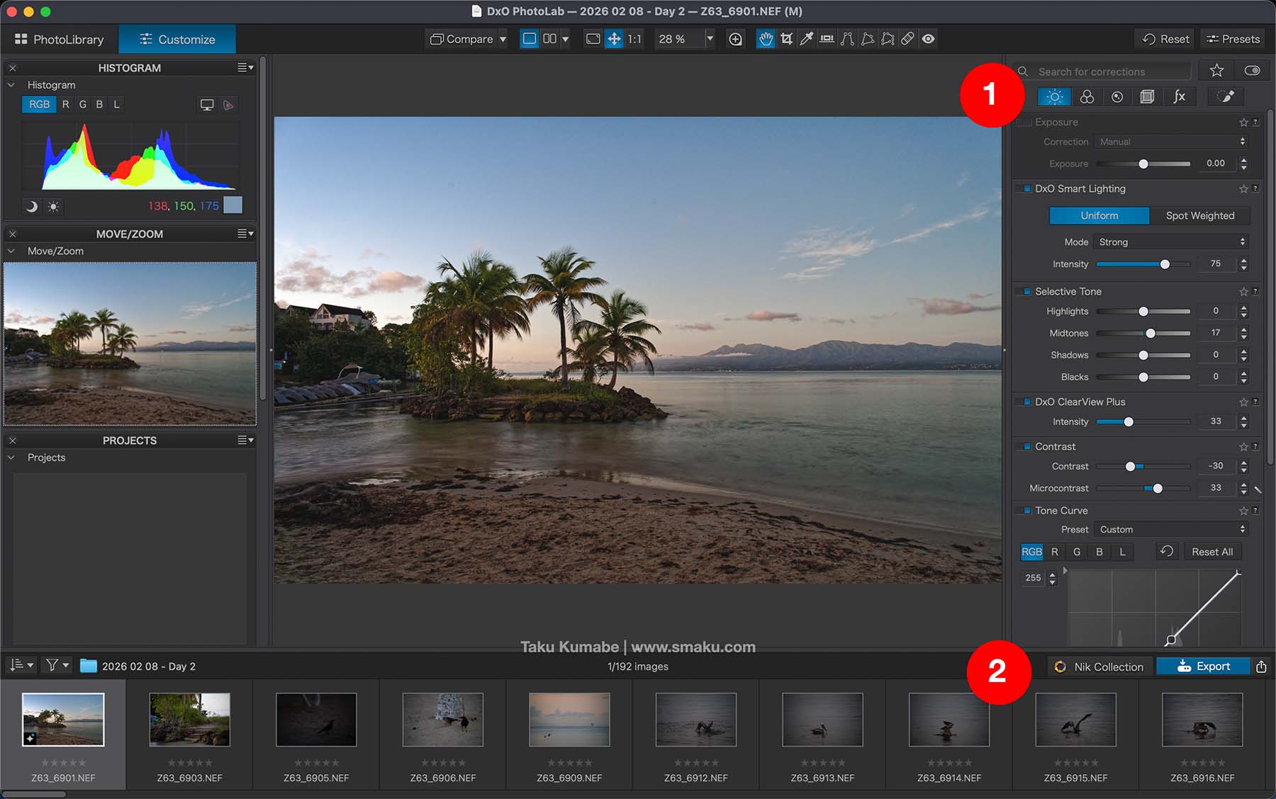 Apart from the odd layout of menu buttons, I find the user interface to be slightly simpler than that of Adobe Lightroom. Having said this, since I’m new to DxO applications, there was a little bit of a learning curve as to where everything was located.