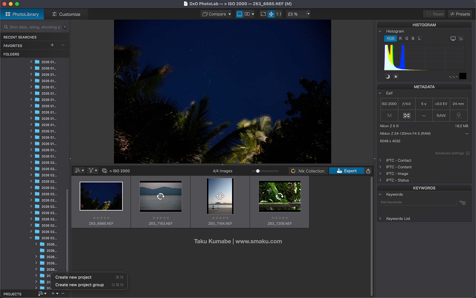 The Projects section serves as a collection area of photos based on a set of criteria. You can use it to organize images for a working project, collect images shot with a specific lens, or at a specific ISO for example. It sort of works the same way as Adobe Lightroom’s Collections.