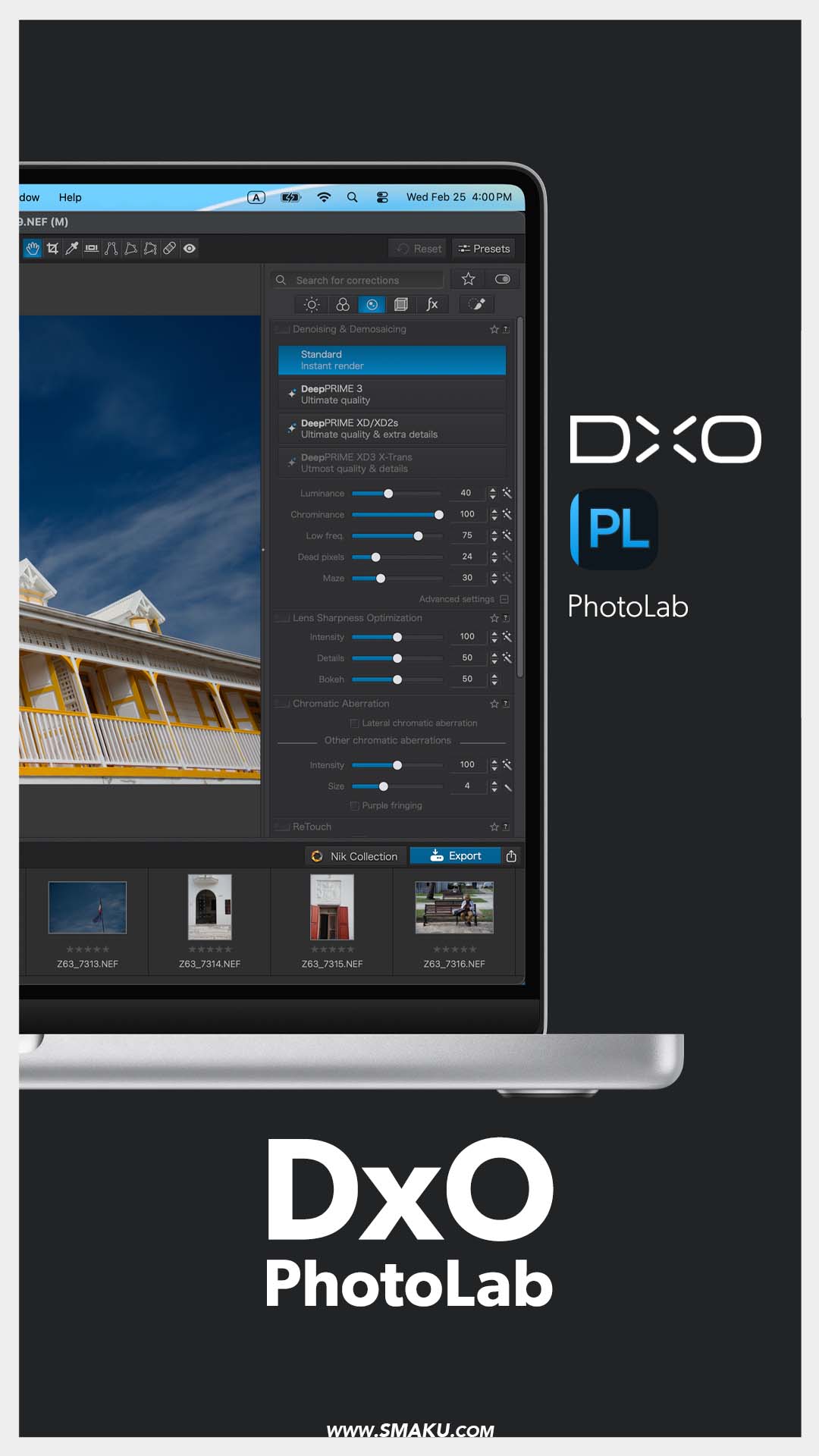 DxO PhotoLab is your complete program that includes file management, noise reduction, editing, and export features. Some things to note for this application: